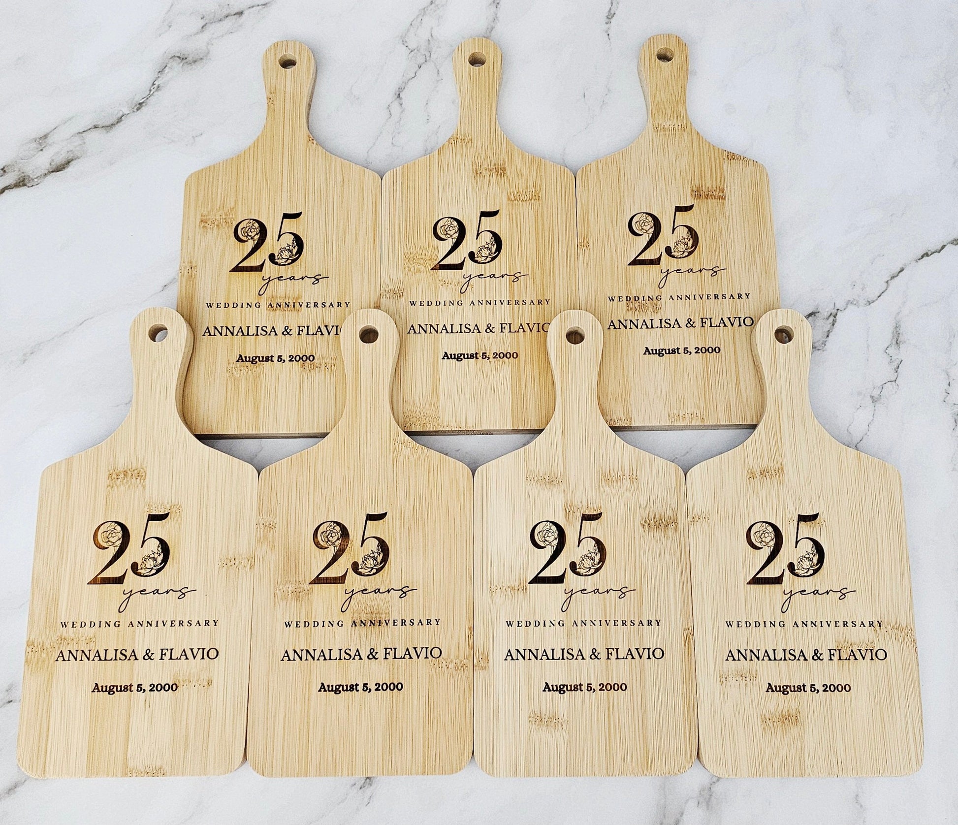Our Personalized Bamboo Cutting Boards are the perfect blend of practical utility and sentimental charm. Whether you are hosting a 25th wedding anniversary or a wedding, these mini boards serve as a sophisticated bonbonniere or party favor that stands out from the rest.