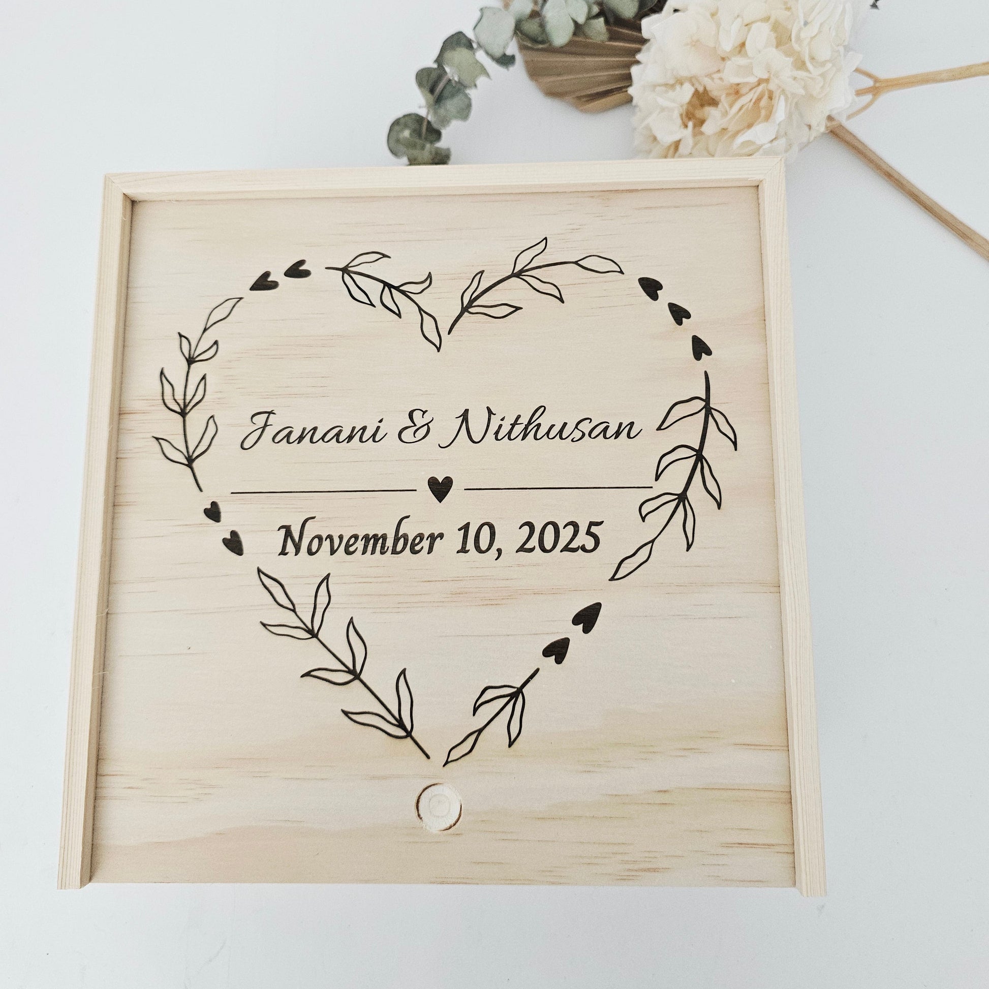 ➡️Dimensions de la boîte cadeau en bois - 8 x 8 x 3" - Emballage rustique - Bois de pin naturel avec un dessus et un dessous en contreplaqué. - Ouvrez et fermez facilement le couvercle.