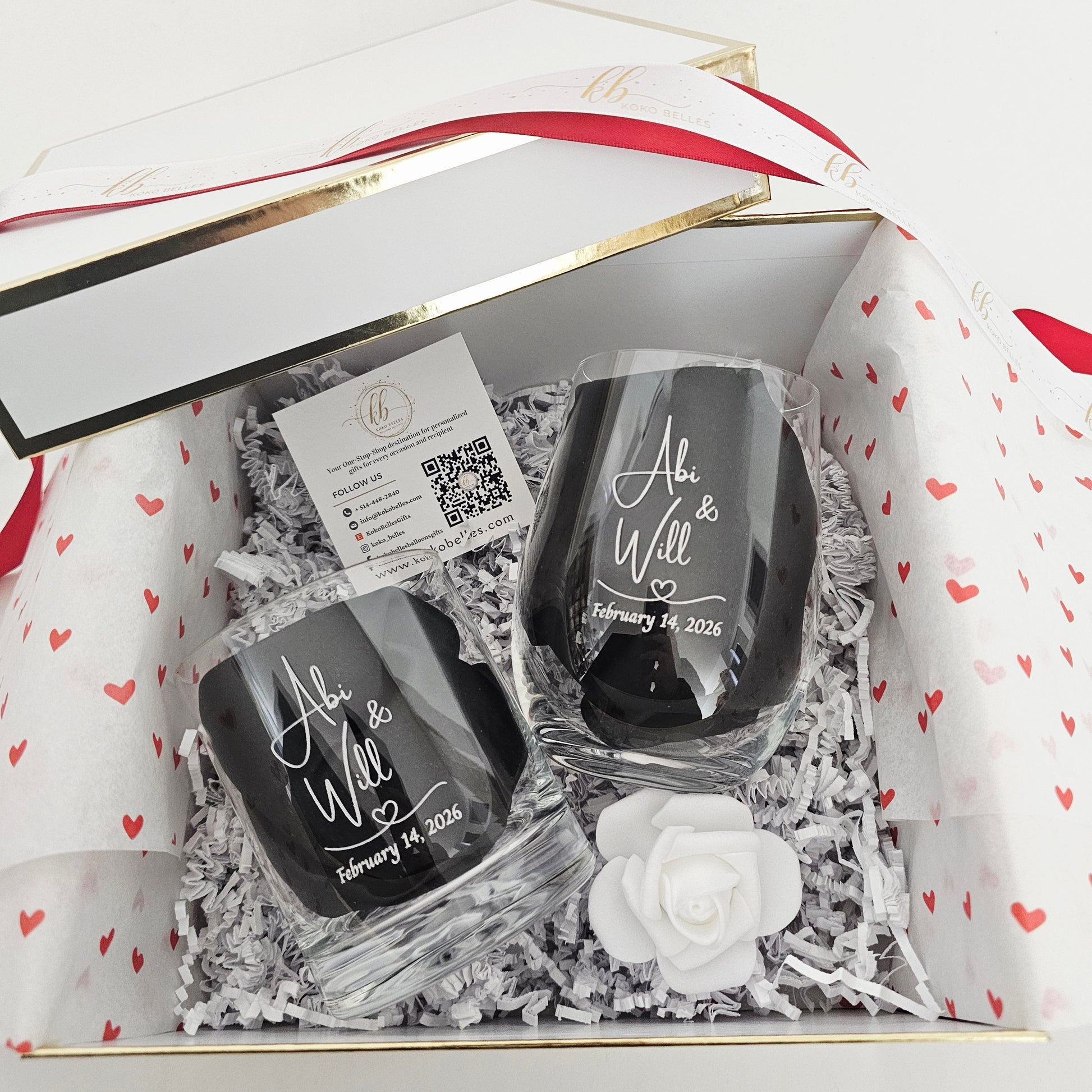 Surprise the happy couple with our Wine and Whiskey Glasses. The perfect gift for weddings, anniversaries, or any special occasion.