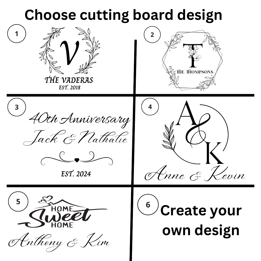 ➡️2 Pack Engravable Square Marble Wood Coasters (The same design you choose for the cutting board will be printed on the coasters unless otherwise noted in the personalization box)