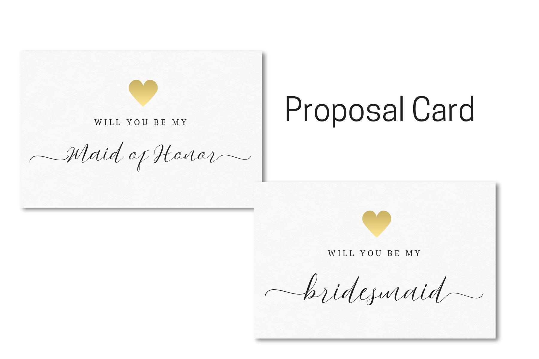- Roles for Proposal Cards: If you would like a specific role printed on the "Will you be my Bridesmaid?" card, please indicate the name and their role (e.g., Sarah - Bridesmaid, Jessica - Maid of Honor). If no role is specified, the card will simply say "Will you be my Bridesmaid?".